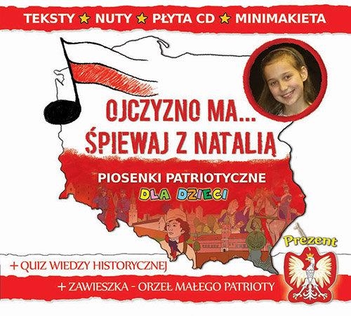 „Ojczyzno ma... Śpiewaj z Natalią” to niezwykła publikacja łącząca historię i tradycję z muzyką oraz dobrą zabawą. Uczy patriotyzmu i pokazuje, że możemy być dumni z bycia Polakami. Książka zawiera teksty najpopularniejszych pieśni patriotycznych wraz z ich opracowaniem nutowym. Dzięki temu, dzieci będą mogły śpiewać razem z rodzicami. W publikacji znajdują się również ciekawostki z historii Polski, m.in. o Mikołaju Koperniku, o skuteczności i odwadze polskich żołnierzy... Dzięki dołączonemu quizowi wiedzy historycznej młodzi czytelnicy będą mogli sprawdzić stan swojej wiedzy z dziejów Polski. Quiz stanowi zarazem inspirację do dalszego, indywidualnego zdobywania wiedzy. Specjalnie zaprojektowane opakowanie kryje w sobie książkę oraz trzy prezenty. Dzieci wraz z publikacją otrzymają płytę CD z 14 utworami patriotycznymi w wykonaniu młodej wokalistki Natalii Topczewskiej, makietę patriotyczną przedstawiającą patronów Polski oraz zawieszkę Orzeł małego patrioty. Niewątpliwym atutem publikacji jest wyjątkowa, pełna kolorów i motywów patriotycznych grafika, która przyciągnie uwagę dzieci. „Ojczyzno ma... Śpiewaj z Natalią” to obowiązkowa lektura każdego małego patrioty. W tym unikatowym opakowaniu znajdziecie: - nuty i teksty pieśni patriotycznych, - ciekawostki historyczne, - quiz z odpowiedziami, - płytę CD z tradycyjnymi i współczesnymi pieśniami patriotycznymi, - zawieszkę – Orzeł małego patrioty, - makietę patriotyczną.