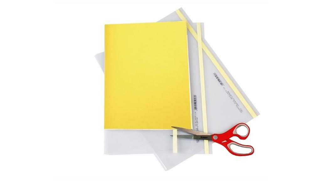 Rozwiązaniem dla formatów nietypowych są okładki samoprzylepne. Dwa paski z klejem znajdujące się na końcach obwoluty służą do przyklejenia do wewnętrznej strony okładki książki. Wysokość regulujemy docinając folię do potrzebnego wymiaru. 32,50 cm x 48,50 cm