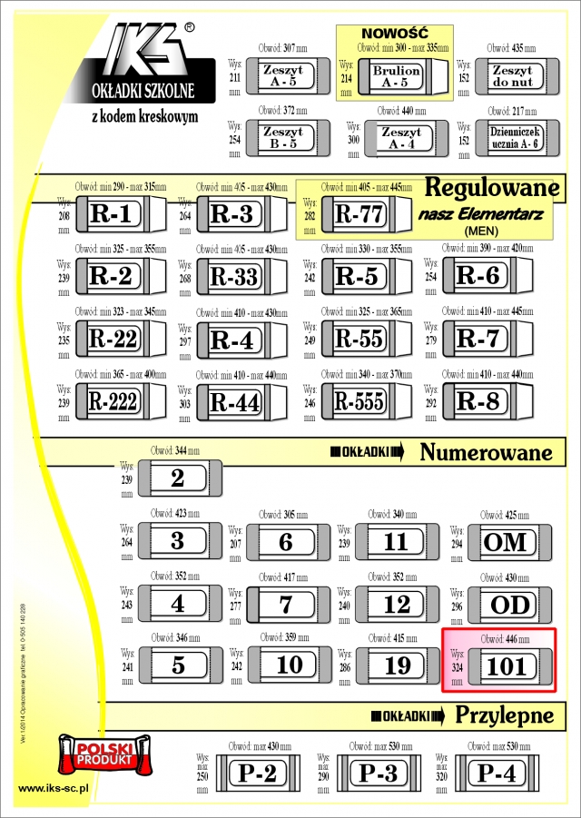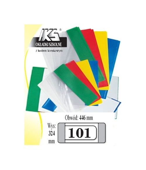 Okładki książkowe nr. 101 Wys. 324 mm Obwód 446 mm Wykonane z wysoko przeźroczystej folii o grubości 0,12 mm, paski w boczne 6 kolorach (mix). Opakowanie sprzedażowe zawiera 20 szt. Każda okładka z nadrukowanym kodem kreskowym