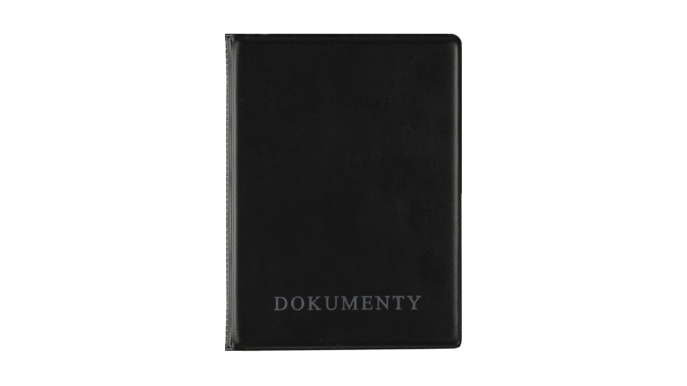 Okładka wykonana z czarnej folii PVC, wewnątrz usztywniona tekturą. Posiada kieszenie, które pomieszczą dowód osobisty, prawo jazdy, dowód rejestracyjny i inne potrzebne dokumenty.