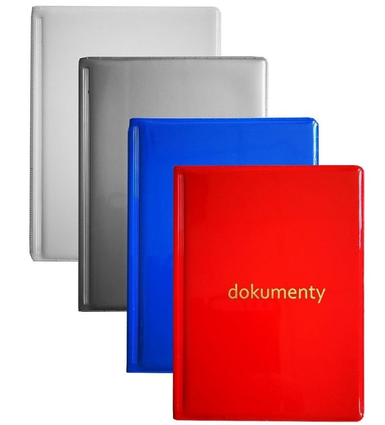 Okładka wykonana z tektury oblewanej folią PVC. Posiada 6 wgrzanych koszulek (4 duże, 2 małe) oraz 2 kieszenie wewnętrzne. Miks kolorów.