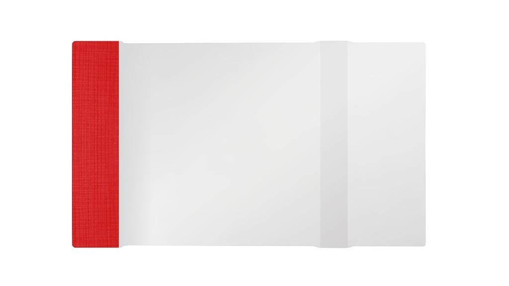 Wykonana z przezroczystej folii PVC. Zakładki w okładkach występują w 4 kolorach: czerwony, zielony, niebieski, żółty. Zakładka po stronie nieregulowanej w podstawowych kolorach. Uskok zapobiegający zaginaniu się okładki. Tłoczenie z oznaczeniem na każdej sztuce. Z jednej strony okładki możliwość regulowania. Łatwoodlepny kod kreskowy na każdej sztuce w opakowaniach w wersji kodowanej.