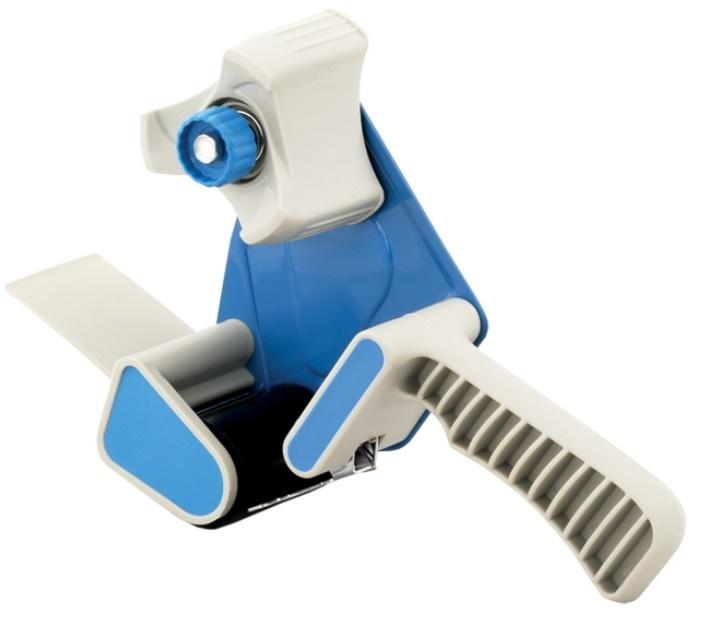 Bardzo pomocna przy oklejaniu kartonów taśmą pakową. Wyposażona w regulację naciągu taśmy oraz hamulec. Posiada sprężynującą prowadnicę i ergonomiczny uchwyt. Cechuje się solidną konstrukcją. Wygodna i poręczna w użyciu.
