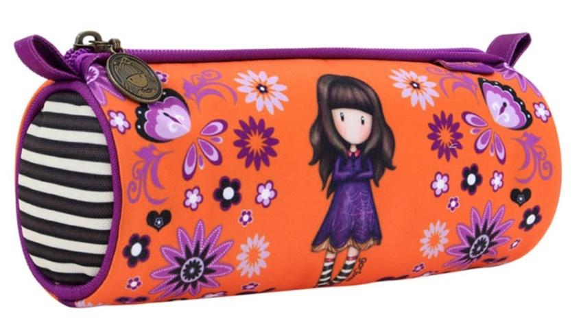 Piękny zapinany na suwak piórnik ozdobiony grafiką egzotycznych kwiatów w odcieniach królewskiej purpury i nasyconego pomarańczu. Suwak ozdobiony medalionem w stylu antycznego mosiądzu z główką dziewczynki Gorjuss. Zmieszczą się w nim zarówno ołówki i długopisy, a także przybory do szycia czy inne drobiazgi.