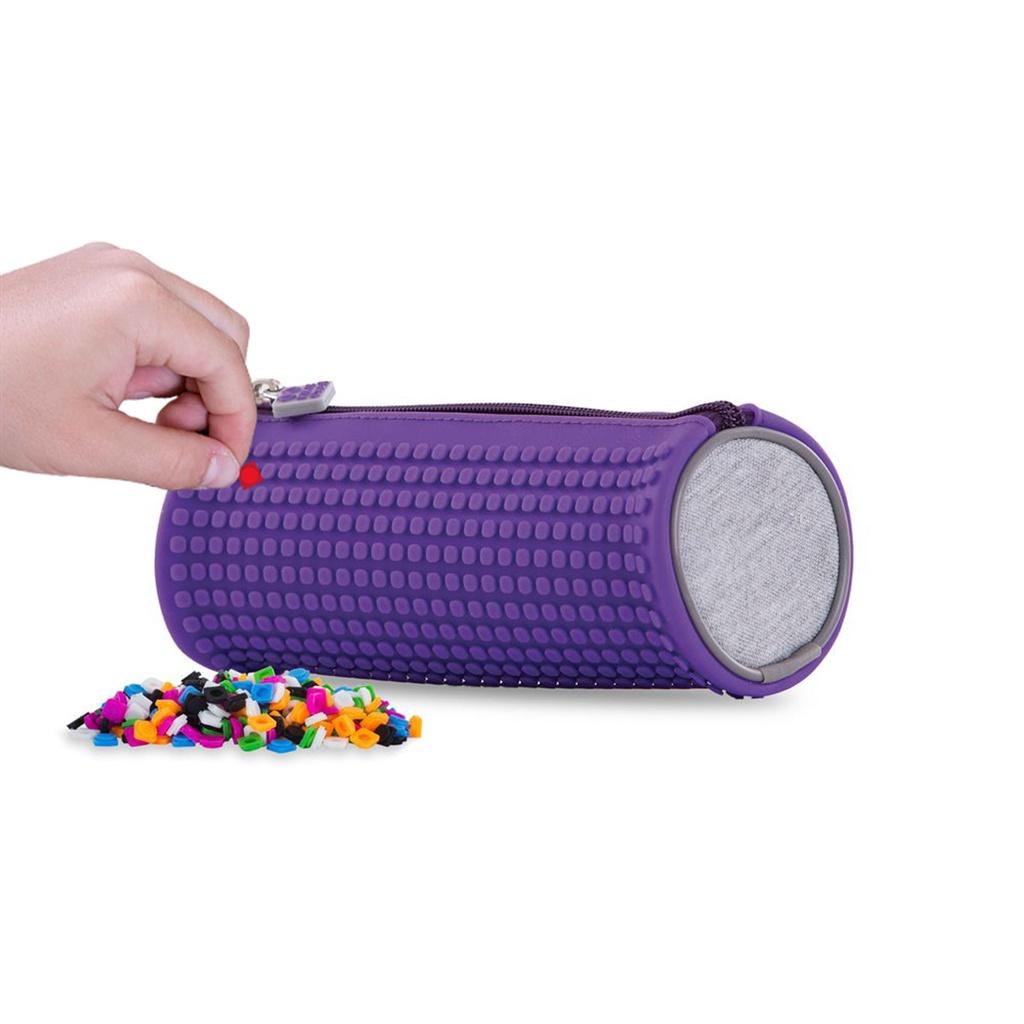 Okrągły wielofunkcyjny piórnik na suwak PIXIE CREW szary, z kreatywnym fioletowym panelem na całej powierzchni, na którym można tworzyć oryginalne i spersonalizowane grafiki, za pomocą małych silikonowych pikseli. Boki wykonane są z praktycznego, wytrzymałego neoprenu, a wnętrze stanowi nylonowa podszewka. Piórnik zapinany jest na suwak. Wewnątrz znajduje się wystarczająco dużo miejsca nie tylko na przybory szkolne, ale również na inne małe rzeczy, które chcemy mieć pod ręką. Dlatego doskonale sprawdzi się także jako kosmetyczka czy saszetka. Piórnik jest sprzedawany z dodatkowym darmowym zestawem około 100 kolorowych pikseli.