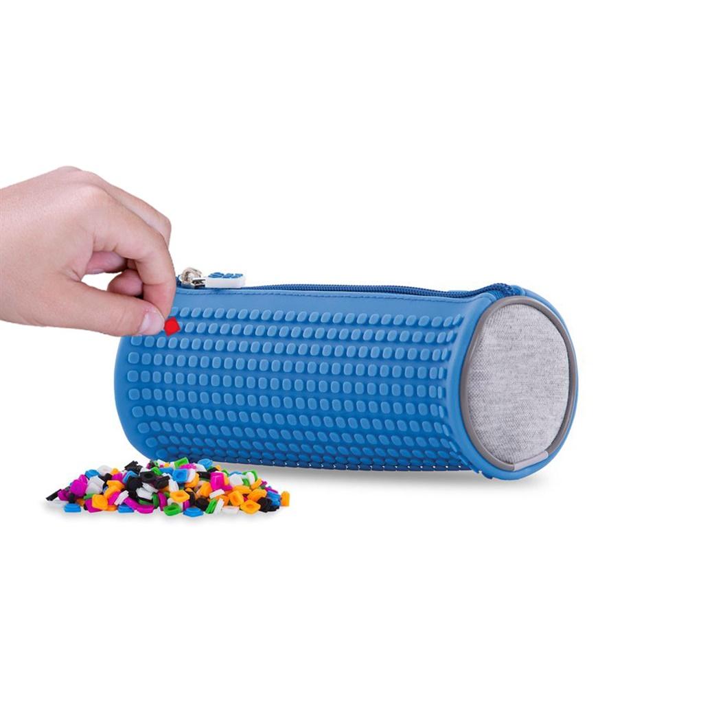 Okrągły wielofunkcyjny piórnik na suwak PIXIE CREW szary, z kreatywnym niebieskim panelem na całej powierzchni, na którym można tworzyć oryginalne i spersonalizowane grafiki, za pomocą małych silikonowych pikseli. Boki wykonane są z praktycznego, wytrzymałego neoprenu, a wnętrze stanowi nylonowa podszewka. Piórnik zapinany jest na suwak. Wewnątrz znajduje się wystarczająco dużo miejsca nie tylko na przybory szkolne, ale również na inne małe rzeczy, które chcemy mieć pod ręką. Dlatego doskonale sprawdzi się także jako kosmetyczka czy saszetka. Piórnik jest sprzedawany z dodatkowym darmowym zestawem około 100 kolorowych pikseli.