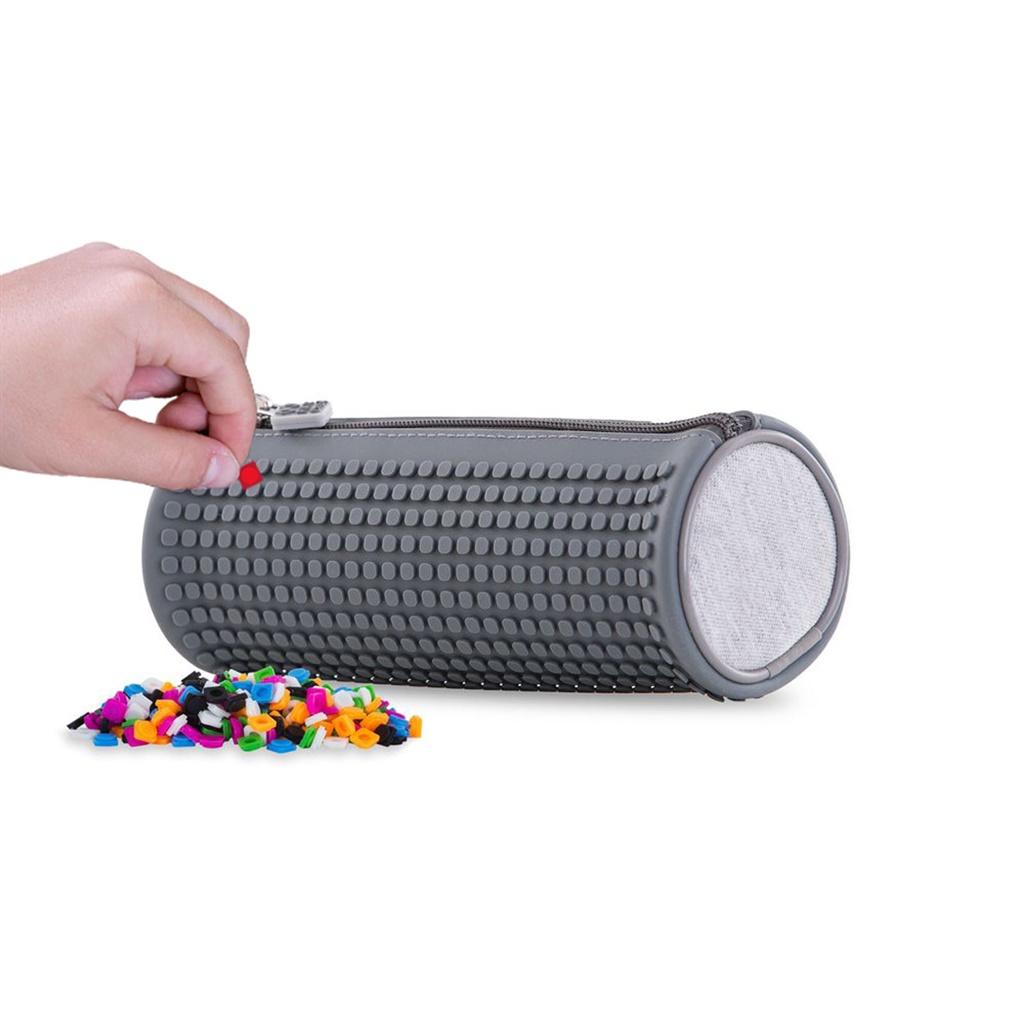 Okrągły wielofunkcyjny piórnik na suwak PIXIE CREW szary, z kreatywnym szarym panelem na całej powierzchni, na którym można tworzyć oryginalne i spersonalizowane grafiki, za pomocą małych silikonowych pikseli. Boki wykonane są z praktycznego, wytrzymałego neoprenu, a wnętrze stanowi nylonowa podszewka. Piórnik zapinany jest na suwak. Wewnątrz znajduje się wystarczająco dużo miejsca nie tylko na przybory szkolne, ale również na inne małe rzeczy, które chcemy mieć pod ręką. Dlatego doskonale sprawdzi się także jako kosmetyczka czy saszetka. Piórnik jest sprzedawany z dodatkowym darmowym zestawem około 100 kolorowych pikseli.