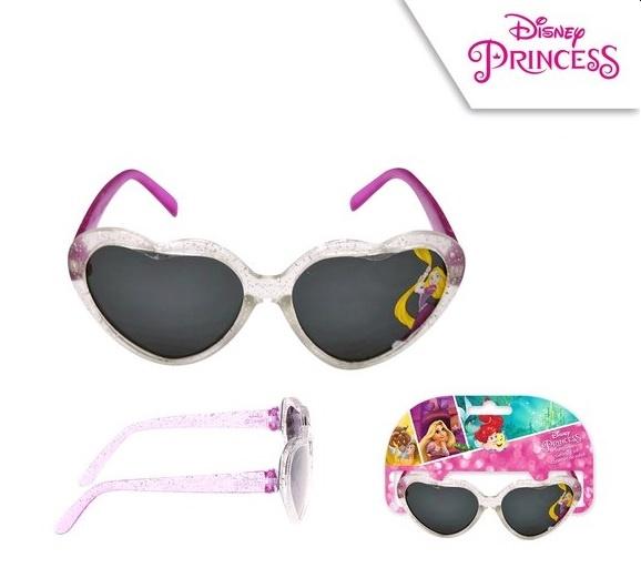 Księżniczki Disneya, Okulary Przeciwsłoneczne. Kolekcja Disney Princess. Okulary przeciwsłoneczne dla dziewczynki w kształcie serduszek, ozdobione delikatnym brokatem. Zapewniają 100% ochrony przed promieniowaniem UV (przepuszczalność światła 8-18%). Chronią przed szkodliwym działaniem promieni słonecznych. Kolor: lodowy. Ciemne szkła. Wymiary: Front - 13 cm x 5 cm, Zausznik: 12,5 cm, pasują do twarzy dziecka. Pielęgnacja: czyścić wilgotną ściereczką. UWAGA: nie patrz prosto w słońce!