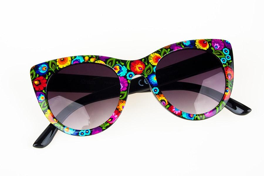 Okulary przeciwsłoneczne FOLK łowickie czarne: oryginalny i praktyczny FOLK dodatek,soczewki z najwyższym filtrem UV400,oprawa stylizowana na ludowo wykonana z wysokiej jakości plastiku w czarnym kolorze,okulary łowickie zachwycają intensywną gamą kolorów i wyjątkową kompozycją,soczewki barwione gradalnie w kolorze czarnym,motyw nawiązuje do tradycyjnych wzorów ludowych z wycinanek łowickich,ozdobne łowickie kwiaty zarówno na froncie oprawek jak i na zausznikach.