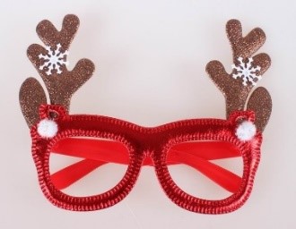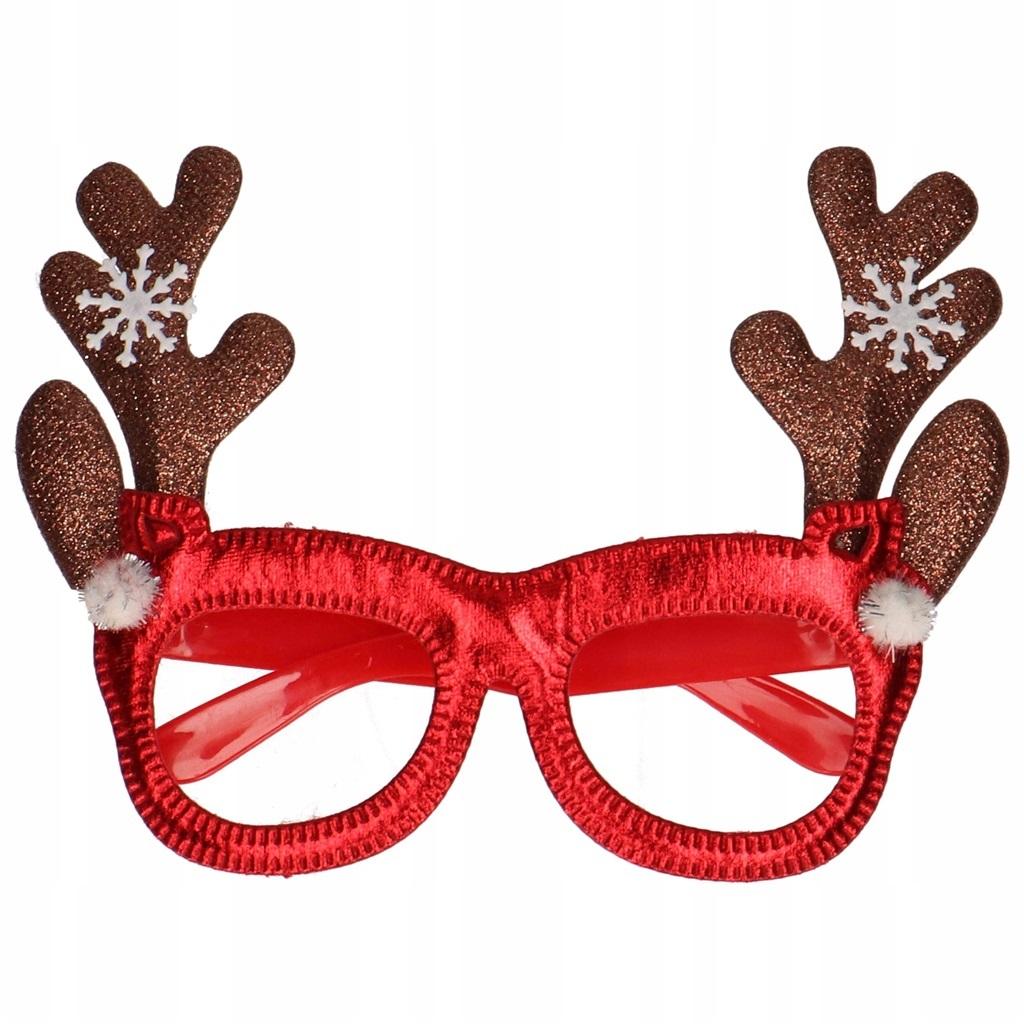 Efektowne okulary z rogami renifera. Starannie wykonane. Wszystkie elementy dekoracyjne wykonane z materiałów tekstylnych. Bardzo efektowny element, który wprowadzi świąteczny klimat.