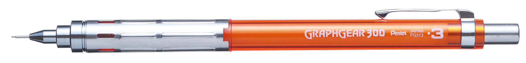 Ołówek automatyczny Grapher 300. Nowoczesny desing, idealne wyważenie. Ołówek został wyposażony w zdejmowany metalowy klip, oraz strukturalny metalowy uchwyt. Nowoczesny mechanizm wysuwania grafitu pozwala na maksymalne jego zużycie. Idealny do pracy przy linijce i szablonach. Grubość 0,3 mm - pomarańczowy kolor obudowy. Pakowany w etui.