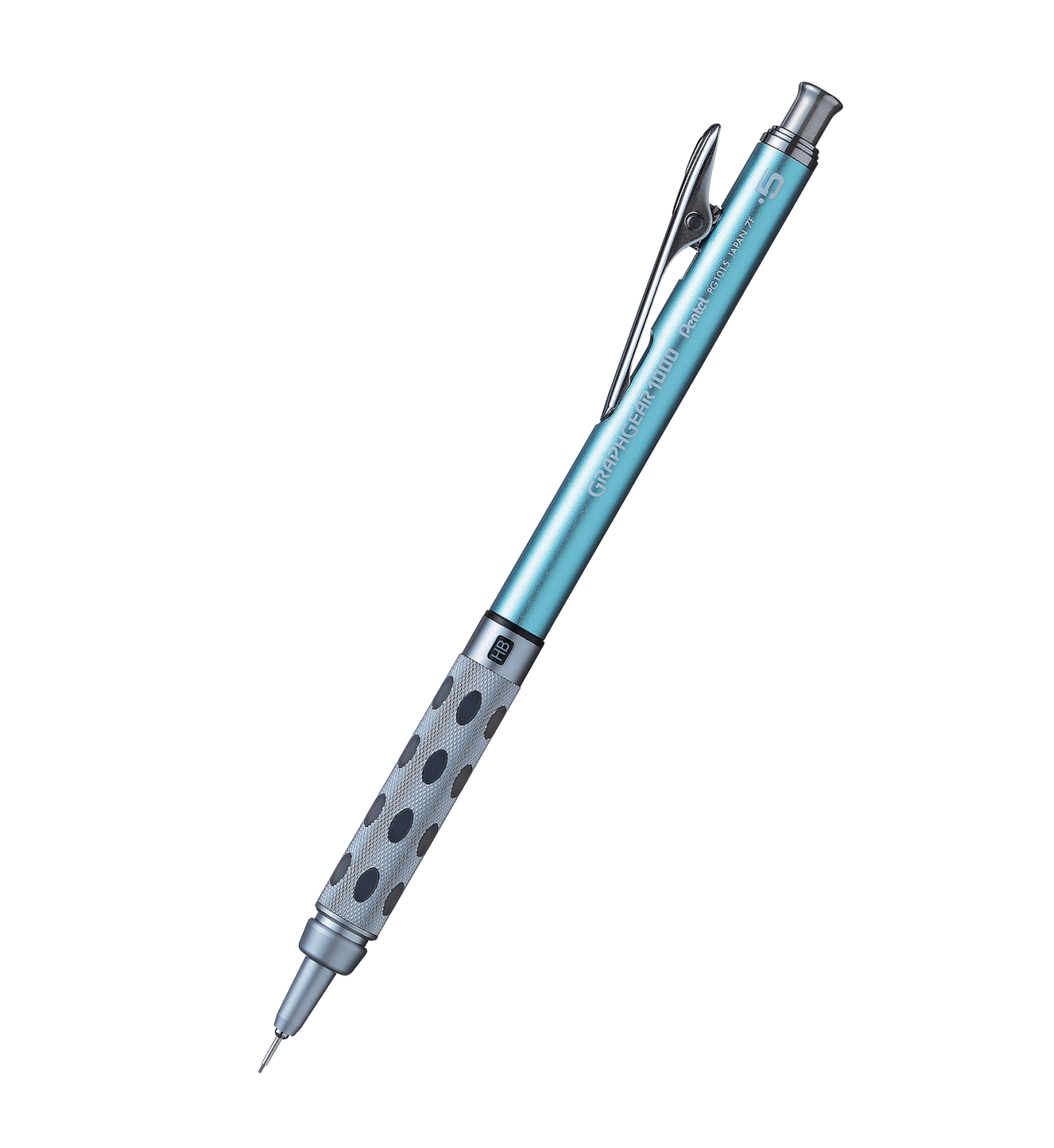 Wysokiej jakości ołówek automatyczny ze stalowym korpusem. Seria ołówków Graphear 1000. Posiada indykator, dzięki któremu można zaznaczyć jakiej twardości jest grafit w ołówku. Nowoczesny mechanizm wysuwania grafitu pozwala na maksymalne jego żuzycie. Gumowe wypustki zawięszają komfort pisania. Grubość grafitu 0,5 mm, stalowo - błękitny kolor obudowy. Pakowany x 1 sztuka w eleganckim etui.