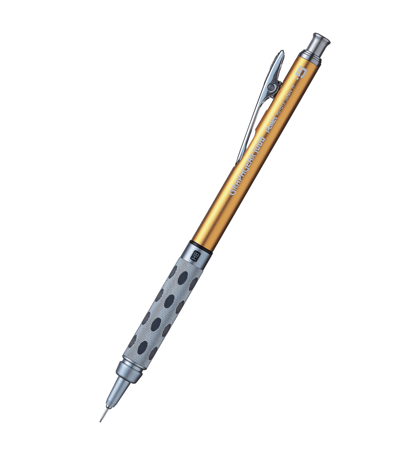 Wysokiej jakości ołówek automatyczny ze stalowym korpusem. Seria ołówków Graphear 1000. Posiada indykator, dzięki któremu można zaznaczyć jakiej twardości jest grafit w ołówku. Nowoczesny mechanizm wysuwania grafitu pozwala na maksymalne jego żuzycie. Gumowe wypustki zawięszają komfort pisania. Grubość grafitu 0,5 mm, stalowo - złoty kolor obudowy. Pakowany x 1 sztuka w eleganckim etui.