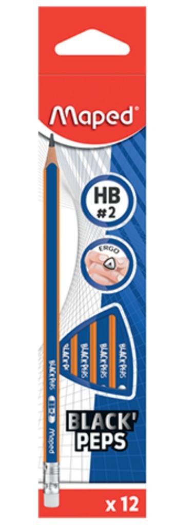 Ołówki Black'Peps Blue z gumką są wykonane z żywicy syntetycznej co wpływa na jakość korpusu - jest elastyczny i giętki. Trójkątny, ergonomiczny przekrój zapewnia poprawny chwyt. Wzmocniony grafit jest wyjątkowo odporny na kruszenie i łamanie. Obudowa w kolorze granatowym z pomarańczowymi paskami. Twardość HB. Pudełko 12 sztuk.