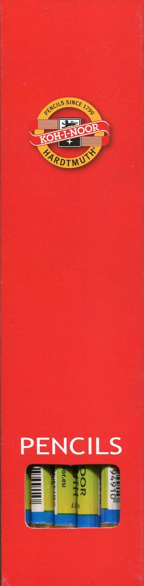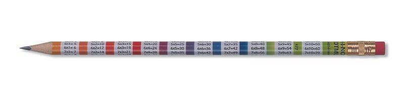 Szkolny ołówek z gumką, KOH-I-NOOR, serii 1231, twardość 2 (HB), z nadrukowaną tabliczką mnożenia.