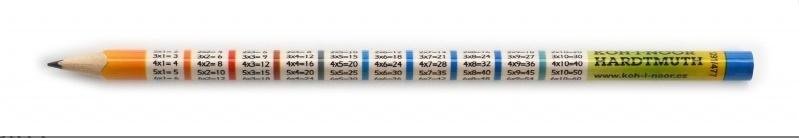 Ołówki o twardości HB w trzech szatach graficznych: puzzle, tabliczka mnożenia oraz figury geometryczne z wzorami matematycznymi.