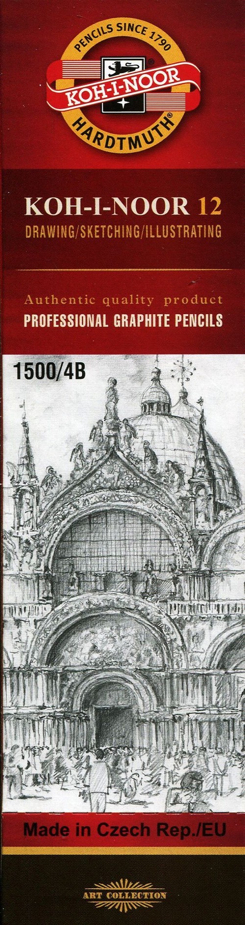 Ołówki grafitowe KOH-I-NOOR serii 1500, charakteryzują się wysoką czystością grafitu z którego zostały wykonane. Oprawki wykonane z drewna cedrowego wielokrotnie lakierowane. Dostępne są w skali gradacji od 10H do 8B. Dzięki tak szerokiej skali gradacji są bardzo wszechstronne i znajdują zastosowanie w grafice, rysunku technicznym, plastyce, oraz szkole, biurze i codziennym użyciu. Twardość 4B, 12 sztuk w opakowaniu zbiorczym.