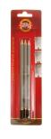 Ołówki serii 1860 KOH-I-NOOR, 3 szt. na blistrze, twardości H, HB, B. Oprawki klejone na całej długości z drewna oprawnego zapewniają odpowiednia ochronę grafitu i łatwość temperowania. Przeznaczone głównie do celów biurowych i szkolnych oraz nauki rysunku.