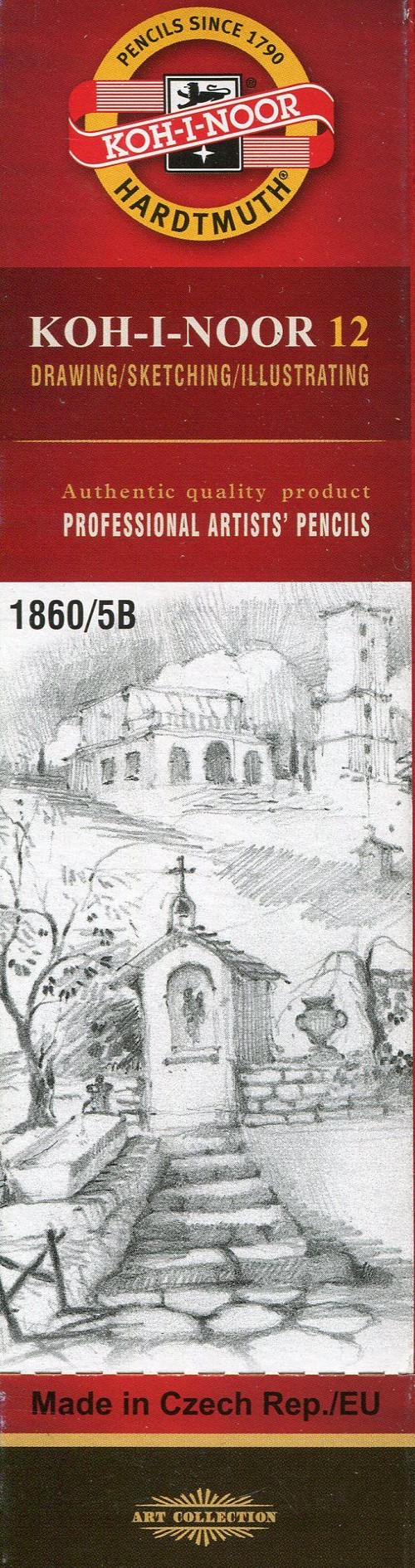 Profesjonalny ołówek grafitowy. Ołówki serii 1860 KOH-I-NOOR, twardość 5B. Oprawki klejone na całej długości z drewna oprawnego zapewniają odpowiednia ochronę grafitu i łatwość temperowania. Przeznaczone głównie do celów biurowych i szkolnych oraz nauki rysunku.