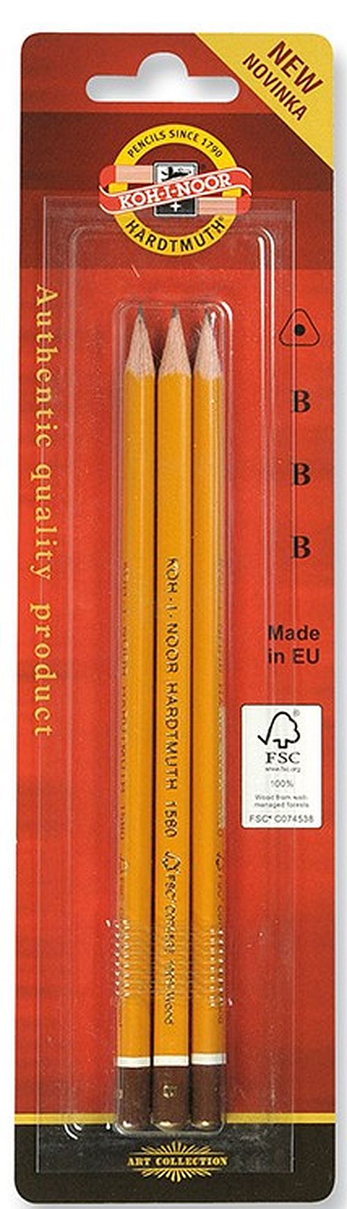 Opakowanie Ołówek grafitowy Triograph Koh-i-Noor B na blistrze 3 sztuki 1580