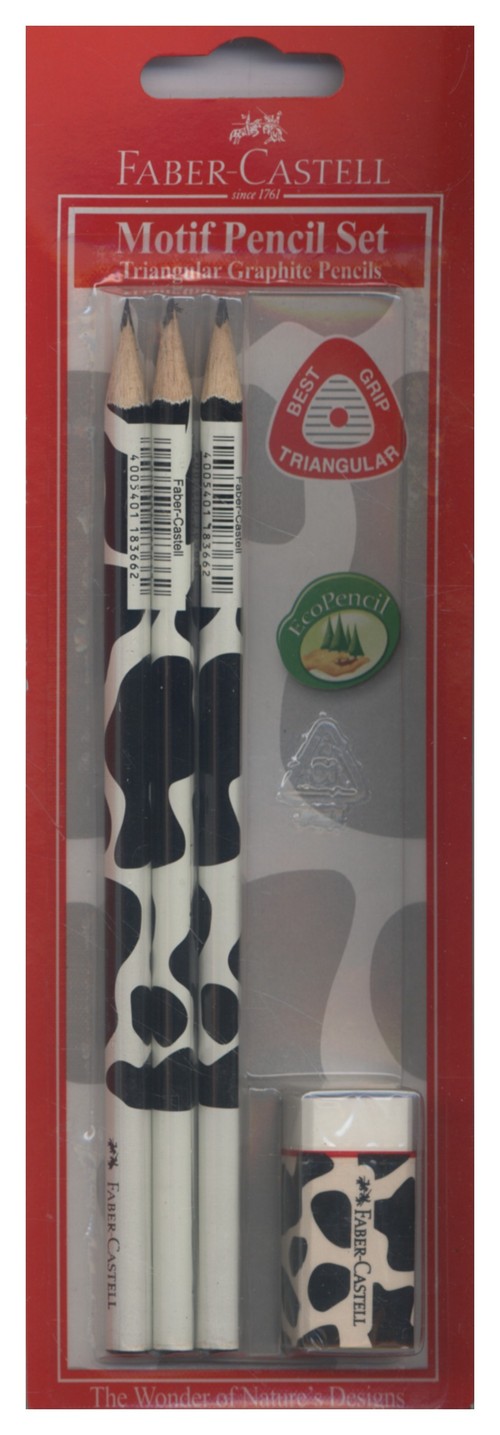 Opakowanie Ołówek grafitowy z kolorowym motywem Krowa 3 sztuki z gumką