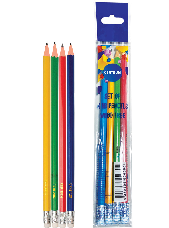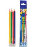 Ołówek twardość: HB. Kształt: sześciokątny, zastrugany, z gumką. Opakowanie: 4 sztuki.