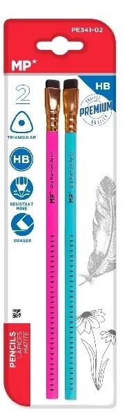 Ołówek HB z gumką 2 szt./blister, różowy i zielony MP
