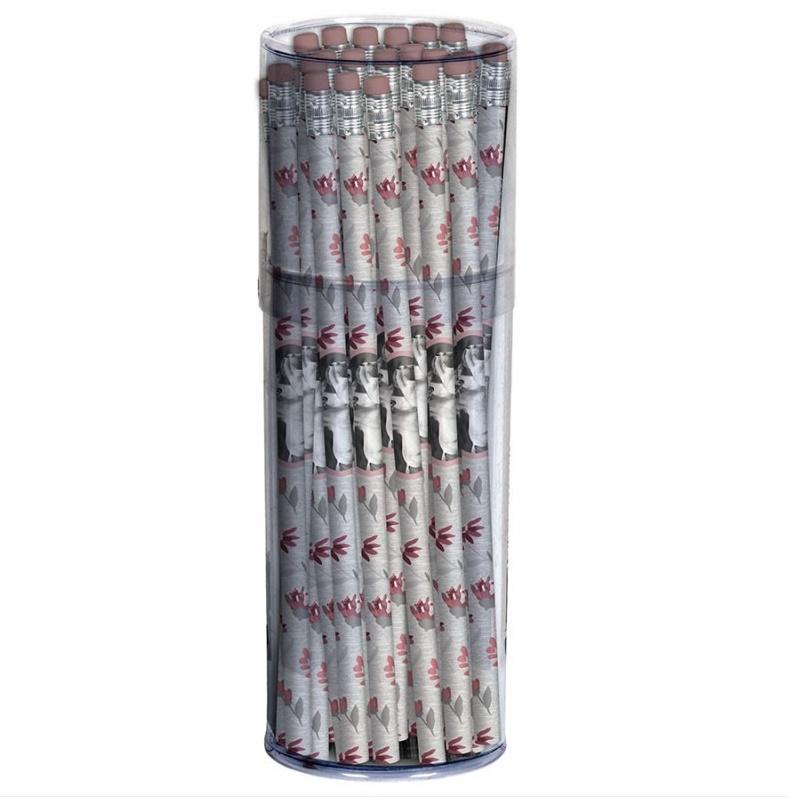 Ołówki Paso Horse szare w kwiatki, tuba 60 ołówków HB z gumką