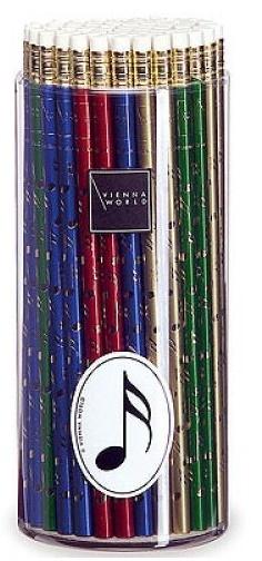 Kolorowy ołówek ozdobiono złotymi nutkami.