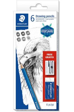 Zestaw zawiera 6 ołówków Lumograph: 2H, HB, B, 2B, 4B, 6B + gumkę i temperówkę