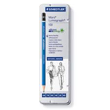 Zestaw ołówków szkicowych Lumograph firmy Staedtler. Seria profesjonalnych ołówków, przeznaczonych do rysunku, szkiców i pisania, cechująca się najwyższą jakością zastosowanych materiałów i wyśmienitymi właściwościami piśmienniczymi. Oprawa, wykonana z drewna pozyskanego z lasów utworzonych i doglądanych przez ekspertów firmy, została trwale zespolona z grafitowym wkładem. Celem tego zabiegu było otrzymanie bardzo wysokiej odporności na wstrząsy, upadek i związane z tym ryzyko połamania rdzenia. Ołówek gładko sunie po papierze, zostawiając wyraźny i gładki ślad, który w razie potrzeby, bez zbędnego wysiłku usuniesz tradycyjną gumką. Metalowy piórnik, w którym zostały umieszczone, zapewnia bezpieczeństwo i właściwe warunki przechowywania.
