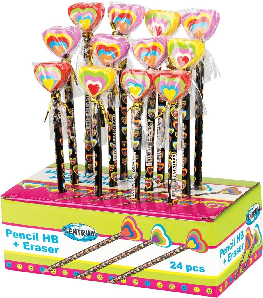 Ołówek okrągły HB z gumką serce (24szt) 88028