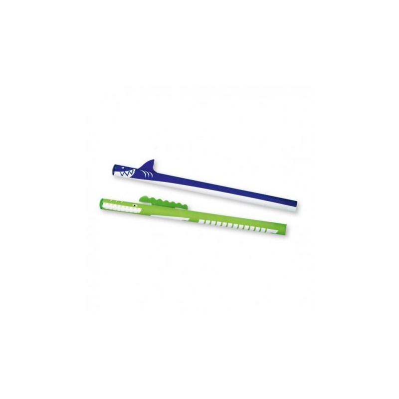 • Każdy ołówek posiada wystającą szarą płetwę rekina lub zielony grzbiet krokodyla.