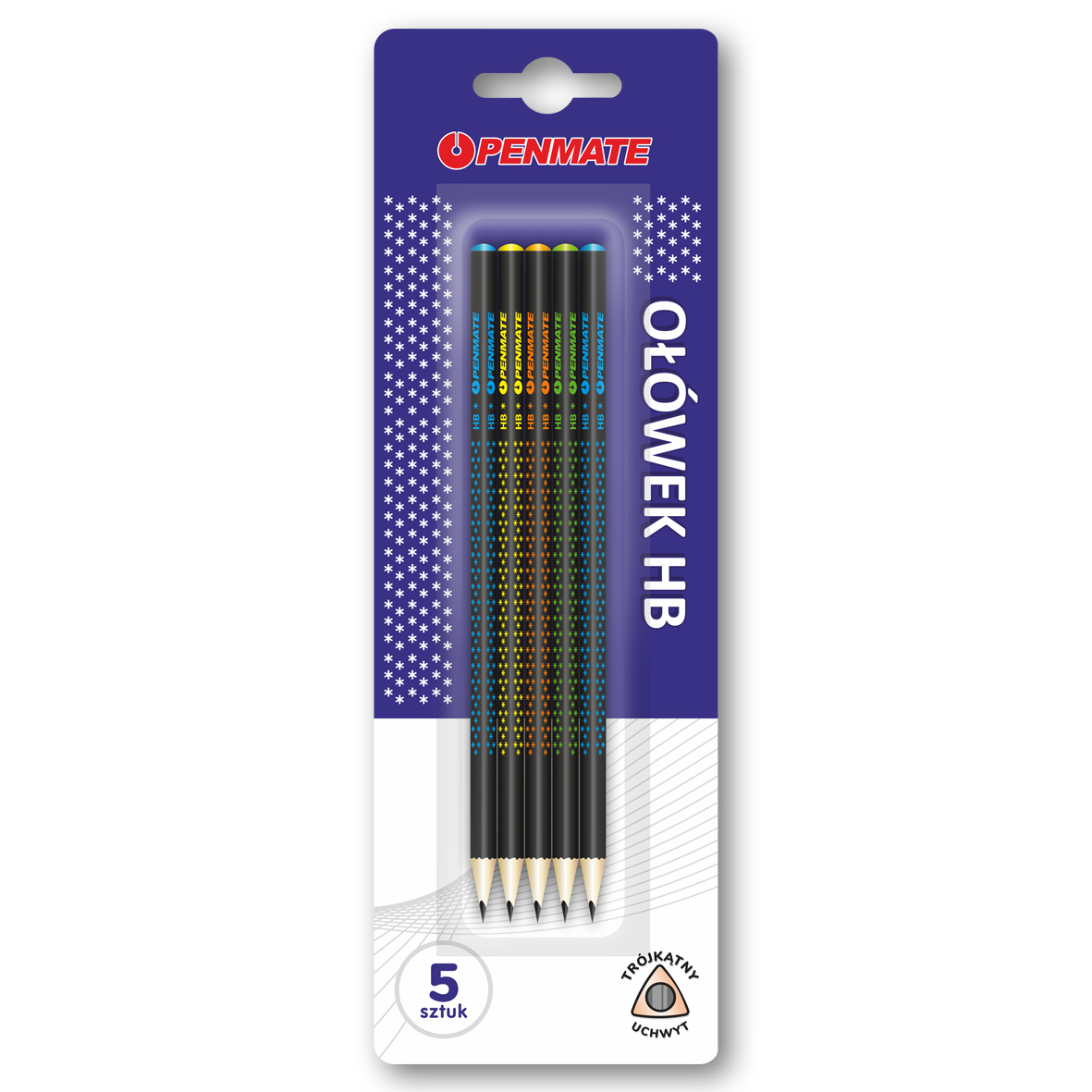 Ołówek Penmate trójkątny ( gwiazdki) 5 szt. na blistrze