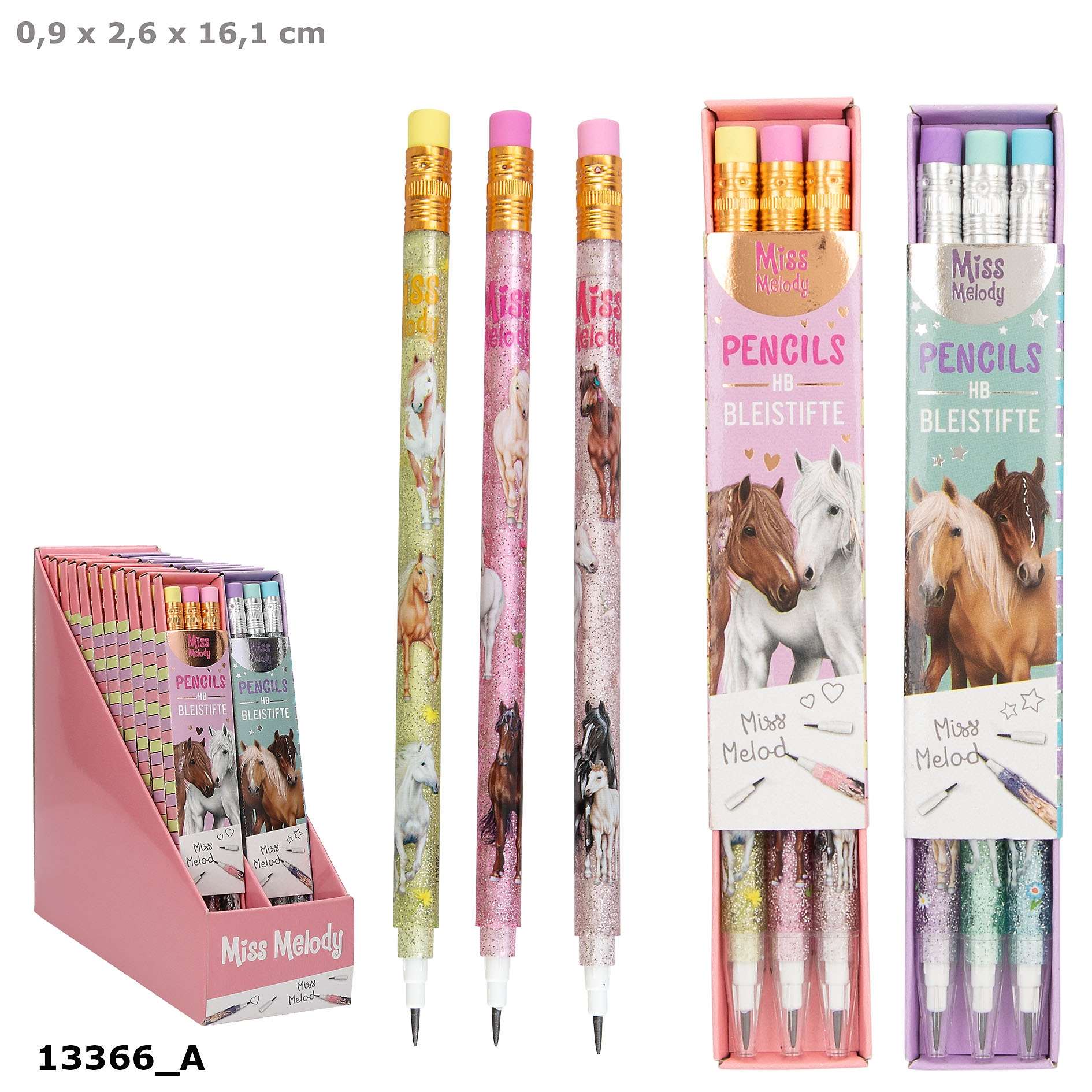 Zestaw ołówków przekładanych Miss Melody, w zestawie 3 sztuki, z gumką do ścierania,