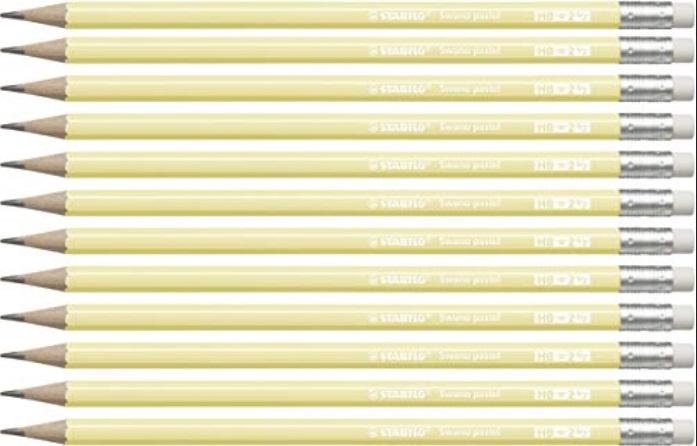 STABILO Swano Pastel - ołówek z gumką w kolorach pastelowych. Dla uczniów, studentów a także do biura. Twardość HB jest idealna do pisania, rysowania i szkicowania. Dostępny w 6 delikatnych, pastelowych kolorach do wyboru. Kolor żółty.