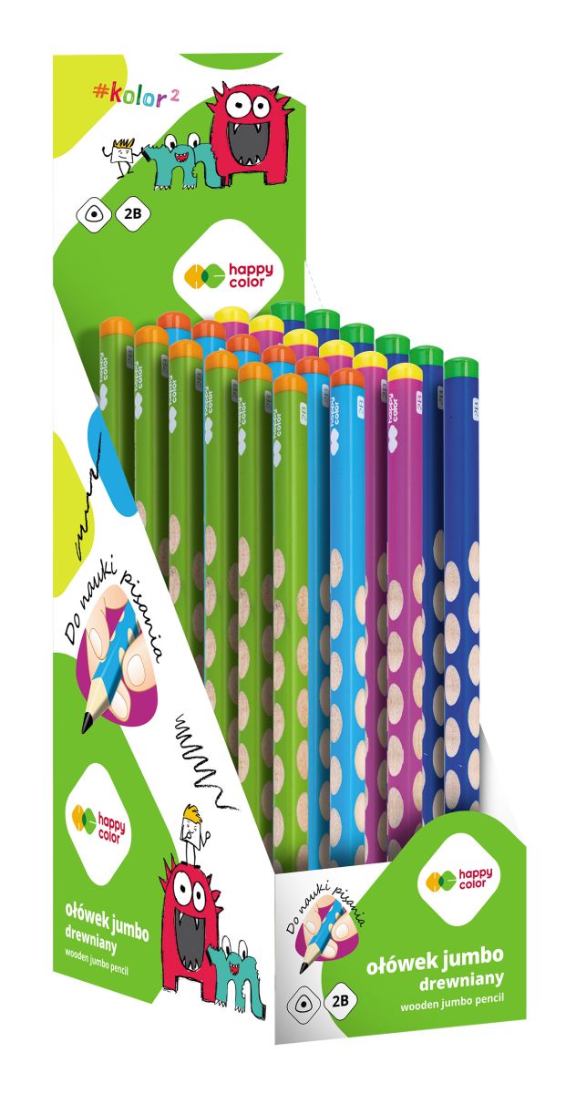 Opakowanie Ołówek trójkątny Jumbo 2B do nauki pisania mix 24 szt. Happy Color