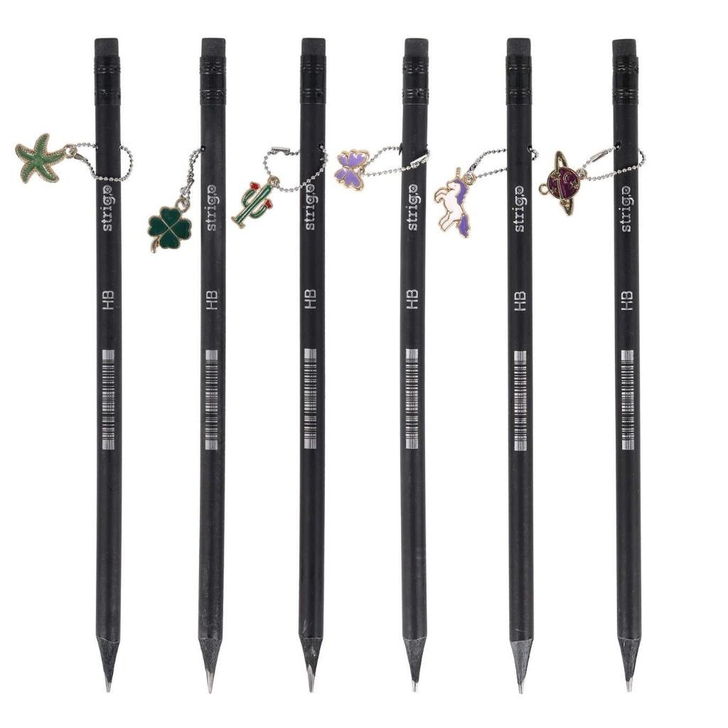 Odkryj Czarne ołówki Strigo z zawieszkami i gumką doskonałe narzędzie do pisania, rysowania i kreślenia, które z pewnością stanie się ulubionym wyborem każdego ucznia!