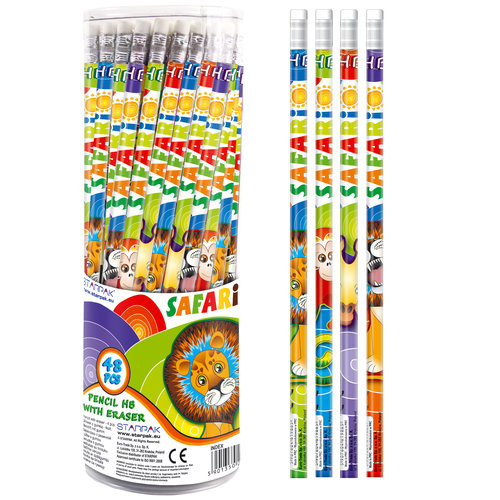 Opakowanie Ołówek z gumką 48 sztuk w tubie Safari