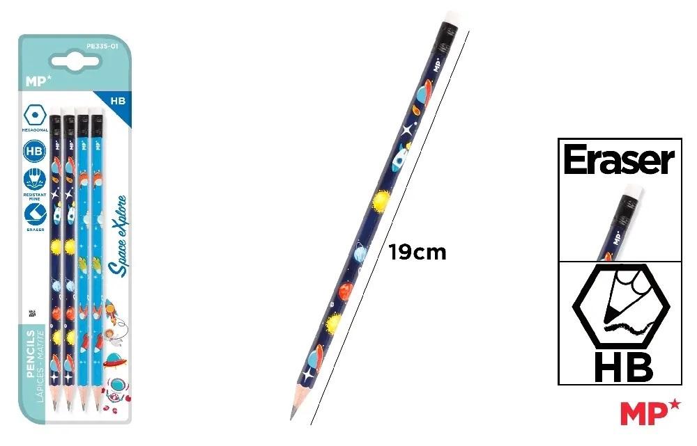 Ołówek z gumką HB 4 szt./blister, Kosmos MP