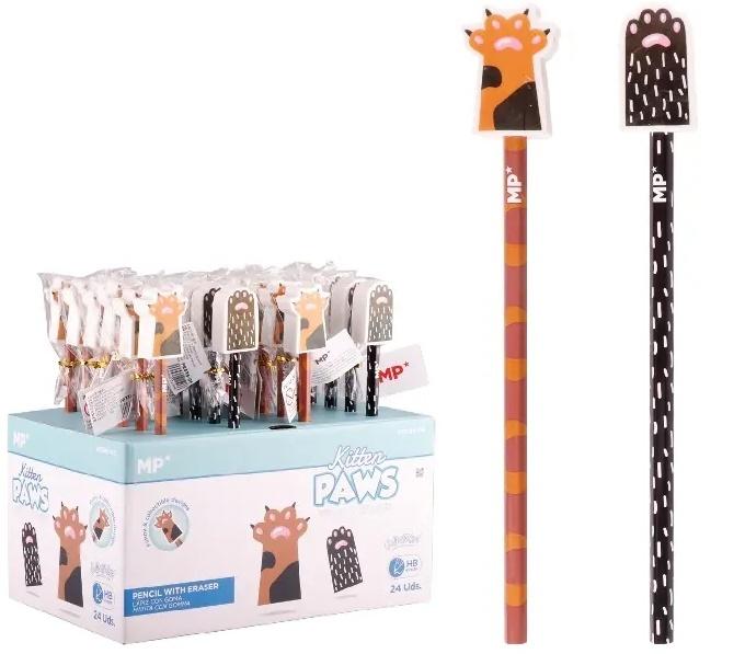 Ołówek HB z gumką w kształcie łapek zwierzaków MP 24szt