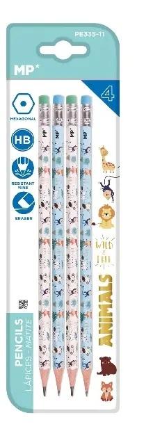 Ołówek z gumką HB 4 szt./blister, Zwierzęta MP