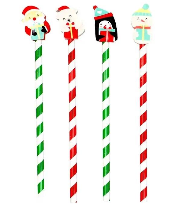 Ołówek z gumką Kot, Bałwan, Miś, Mikołaj mix