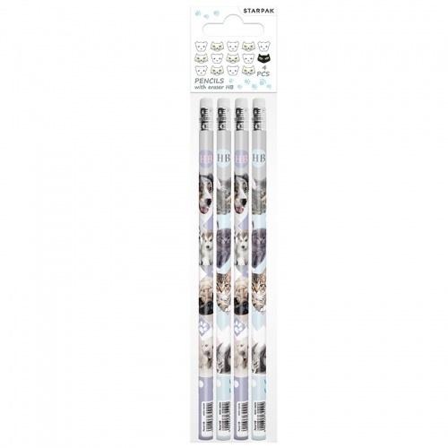 Zestaw 4 ołówków z gumką z kolekcji Starpak z licencją Cuties. Każdy ołówek zdobiony kolorową grafiką z ulubionymi bohaterami. Wykonany z trwałego drewna, zapewnia komfort rysowania i pisania. Ołówek nie łamie się podczas strugania a gumka nie brudzi.