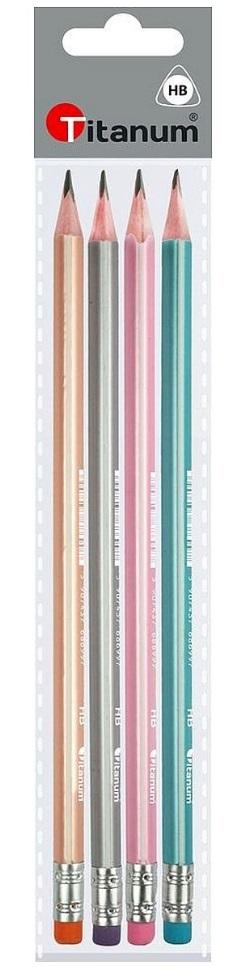 Ołówek z gumką trójkątny HB perłowy 4szt