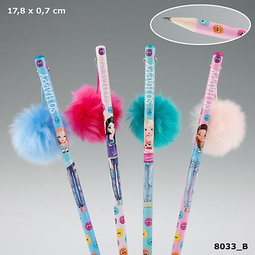 Ołówek z pomponem z kolekcji Top Model happy. Cztery kolory do wyboru: różowy fioletowy, biały i czarny.