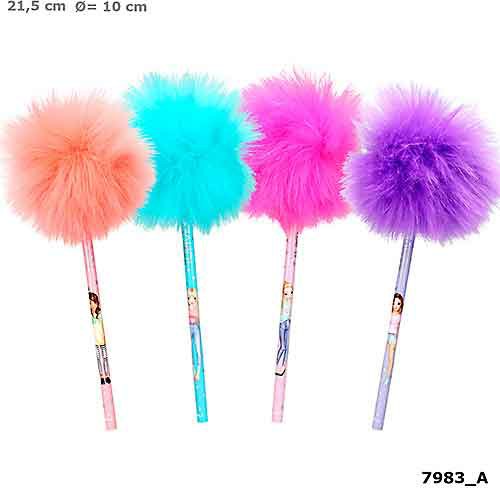 Ołówek TOPModel z wkładem HB, w czterech kolorach: niebieskim, fioletowym, jasnoróżowym i różowym z dużym pomponem ze sztucznego futra.