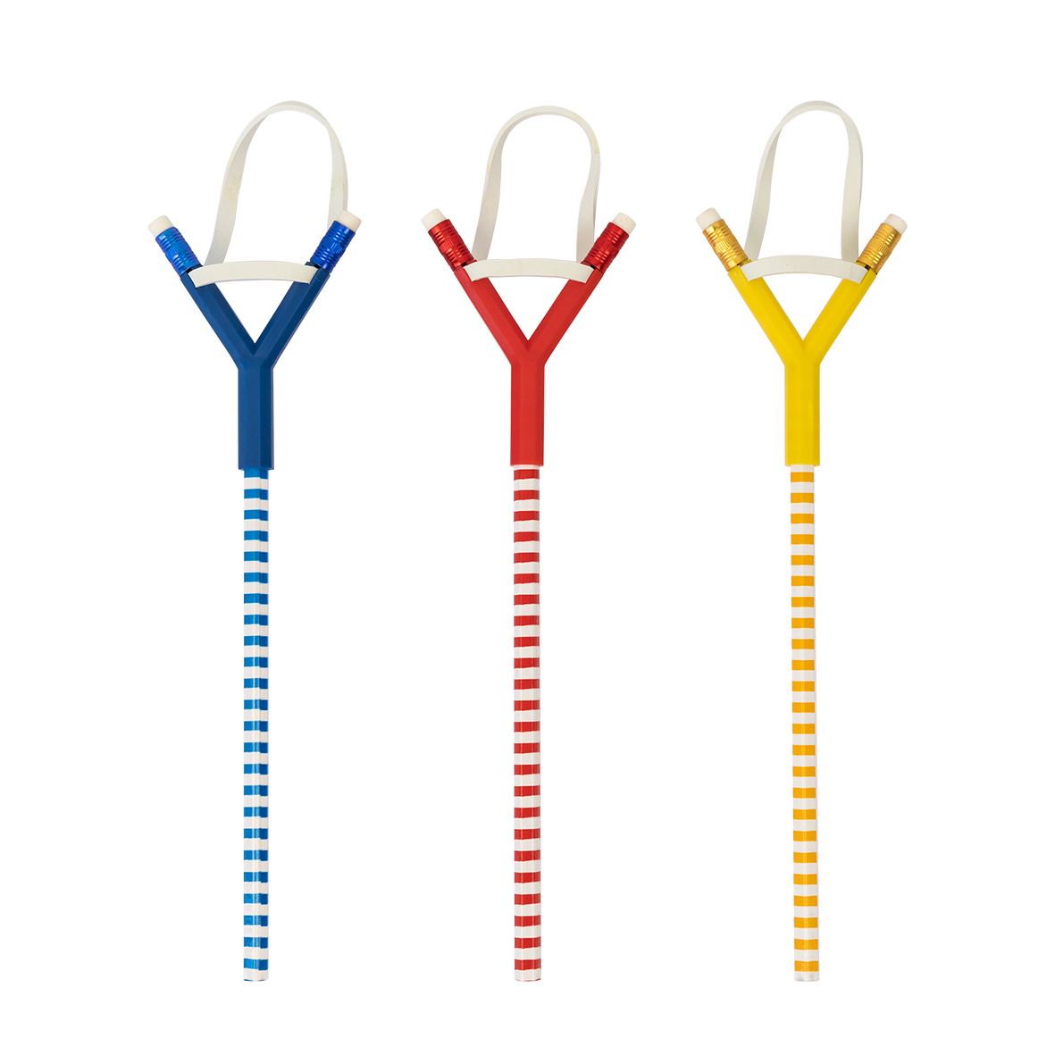 Ołówek z fajną, dołączoną procą zawiera 2 nakładki z gumkami do ścierania. Dostępny w 3 kolorach: niebieski, żółty, czerwony. Materiał: drewno, guma, aluminium, plastik, Rozmiar: ołówek: ok. 17,5, cm, O ok. 0,6 cm, proca: ok. 8,0 cm