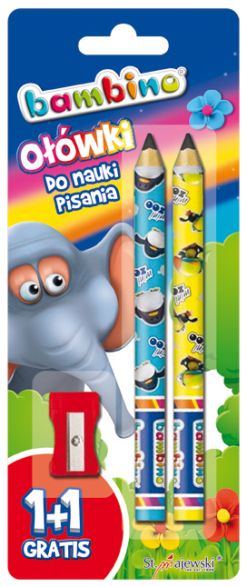 Ołówki dedykowane dzieciom w wieku wczesnoszkolnym. Są grube przez co wygodne dla dzieci, które uczą się dopiero prawidłowego chwytu i stawiają pierwsze litery. Ołówki Bambino wyróżnia bardzo wysoka jakość, produkowane są z drewna lipowego o twardości grafitu HB i średnicy 6 mm. Bardzo gruby grafit w mniejszym stopniu narażony jest na złamanie. Ołówki są produkowane w Polsce w zgodzie z dyrektywą Parlamentu Europejskiego i Rady w sprawie bezpieczeństwa zabawek oraz rozporządzeniem Ministerstwa Gospodarki w sprawie zasadniczych wymagań dla zabawek. Licencja - BAMBINO Ilość sztuk w opakowaniu - 2 Cechy szczególne - Śr. 10 mm, dł. 148 mm, grubość grafitu 6 mm.