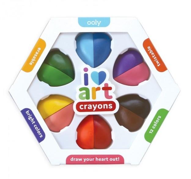 Kredki stworzone po to by małe dłonie wprost rwały się do tworzenia. Dwukolorowe serca można przekręcić tak by uzyskać owalny kształt dobrze pasujący do dziecięcej dłoni. To ułatwia zabawę szczególnie początkującym małym artystom. Jasne kolory świetnie współgrają z nietypowym kształtem. Dzieci docenią również fakt, iż mogą dokonywać zmian w swoim rysunku wycierając te fragmenty, które wyszły nie tak jak sobie zaplanowały.